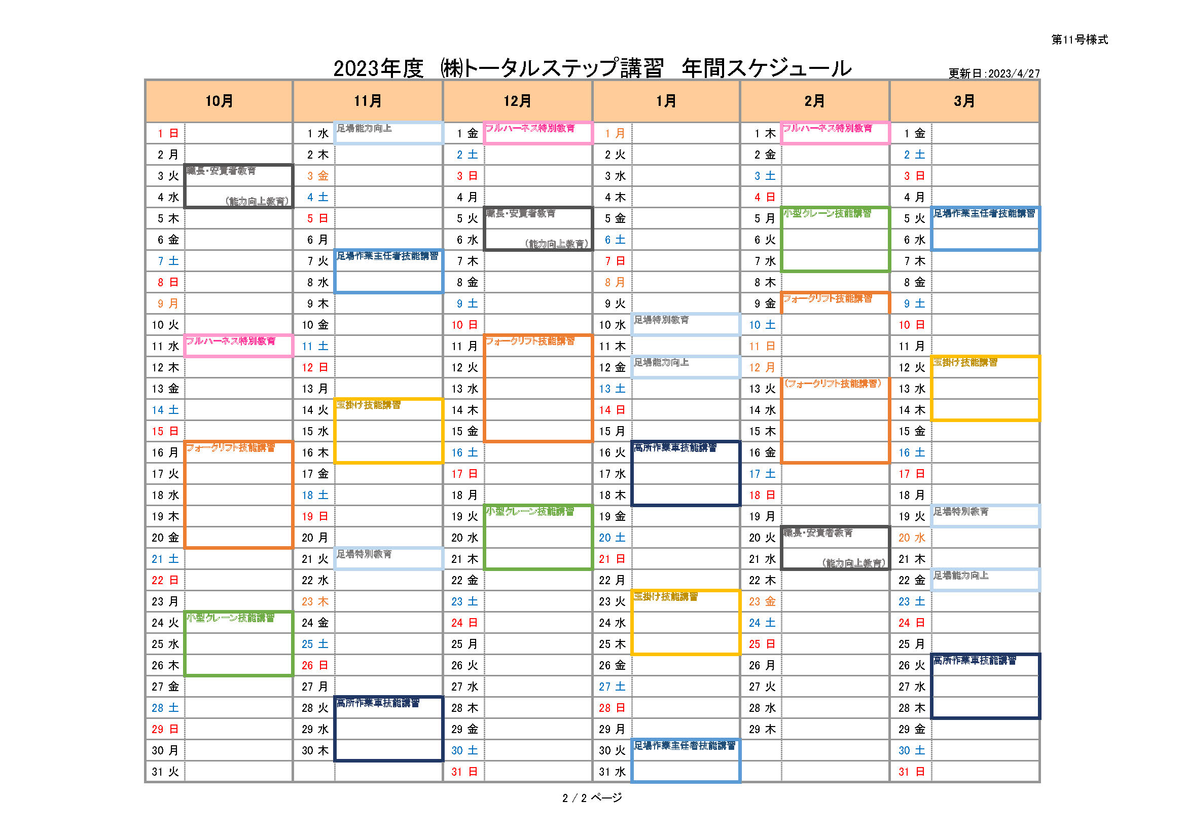 弊社HPを御覧くださりありがとうございます。 2023年度講習スケジュールを公開致しますので、ぜひ御覧ください。 なお、予定が変更になっている場合がございますので、詳しくは事務局までお問い合わせください。 (5名様以上であれば、講師との日程調整の上、ご希望のスケジュールで受講いただくことも可能です。) 皆様からのお問い合わせをお待ちしております。